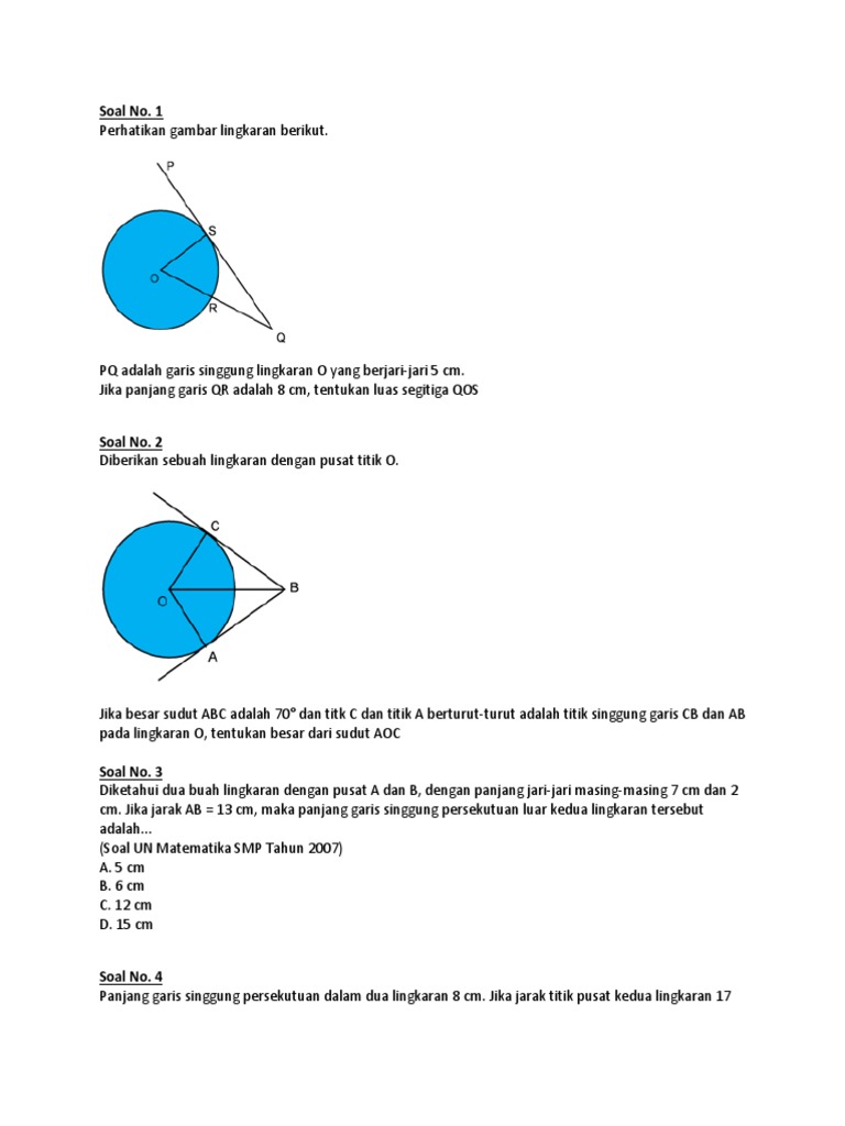Soal Lingkaran Dan Garis Singgung Lingkaran Kelas 8 Smp
