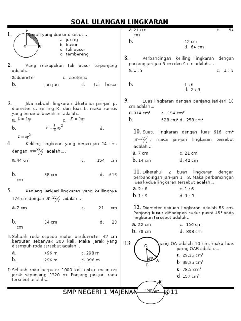 Soal Ulangan Lingkaran Kelas Viii Smp