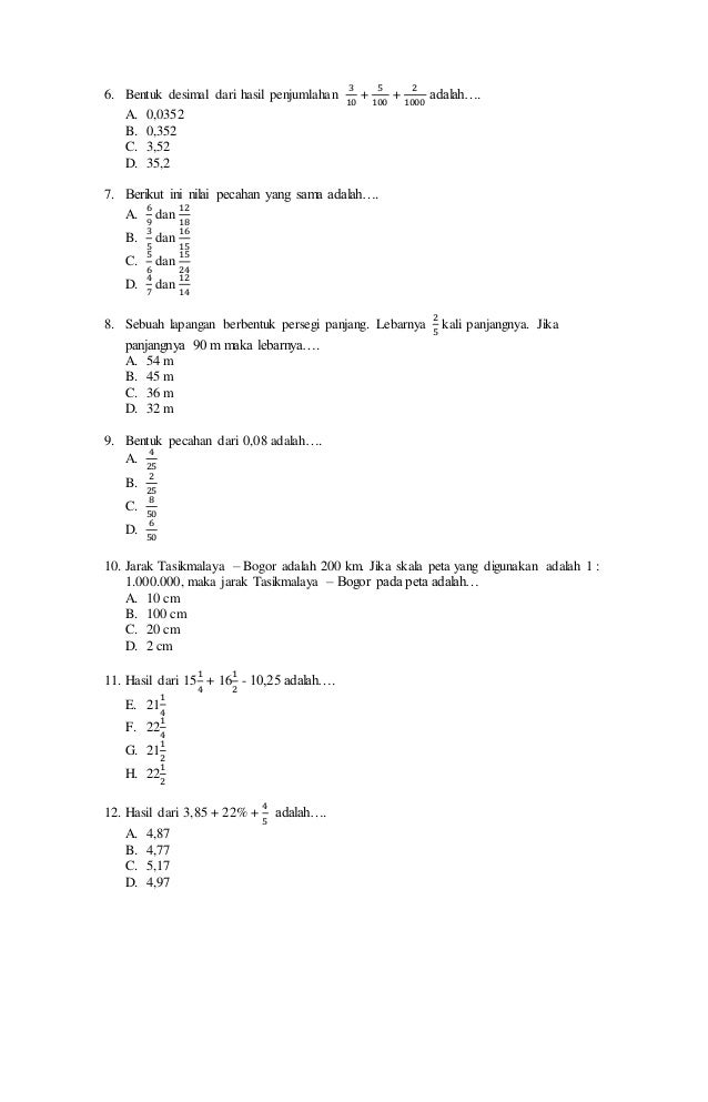 Soal Uts Matematika Kelas 5 Sd Mi Semester 2