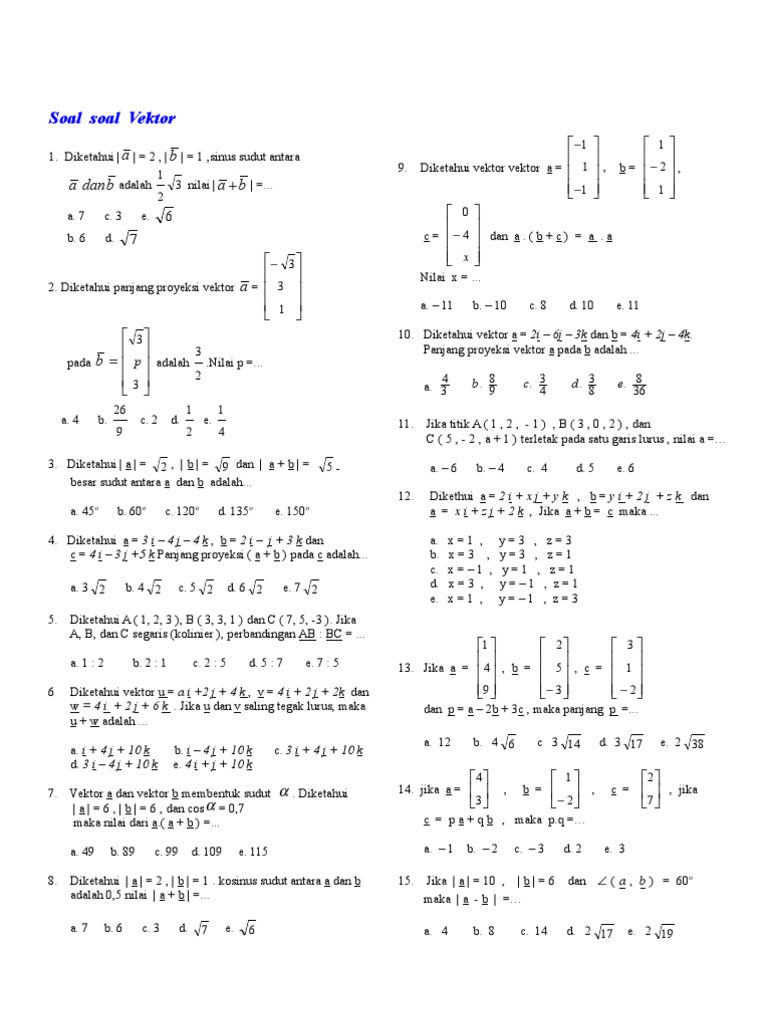 Contoh Soal Vektor Matematika Dan Pembahasannya Pdf Ilmu