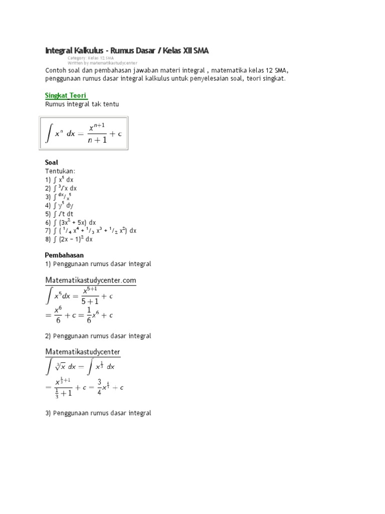 Lanjutan Kumpulan Contoh Soal Integral 1 Ahmadthohir1089