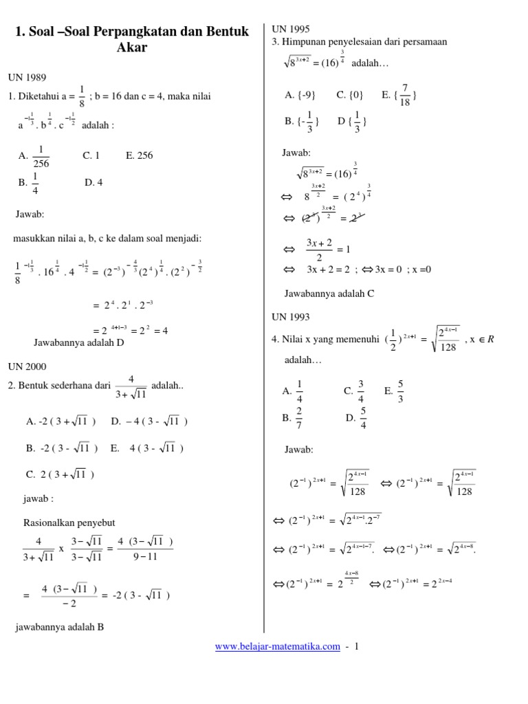 Latihan Bilangan Berpangkat Dan Bentuk Akar Matematika